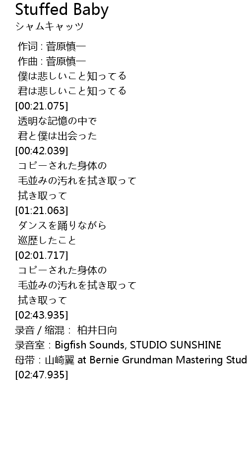 | [02:45.935] | 录音室:Bigfish Sounds, STUDIO SUNSHINE |