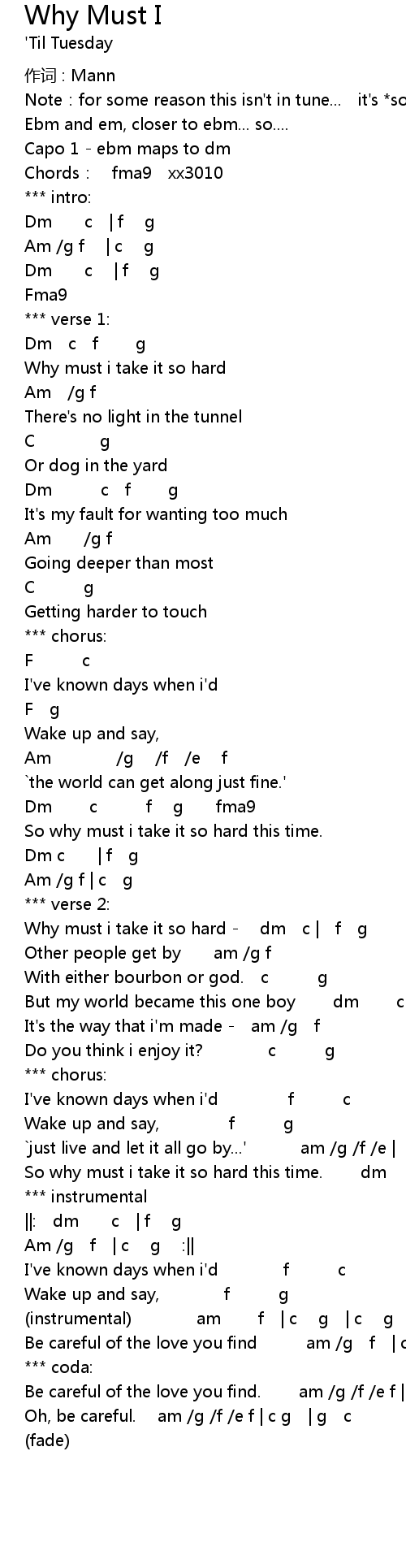 | So why must i take it so hard this time. dm c f g fma9 | |