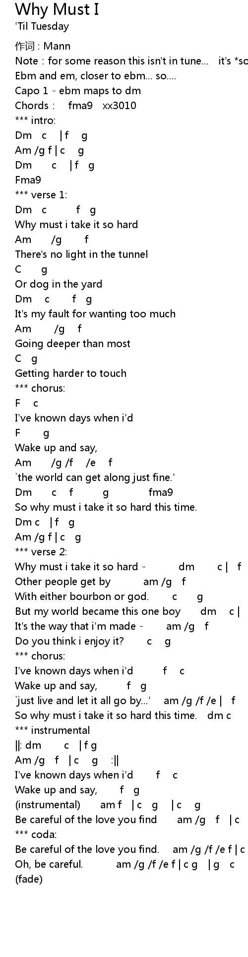 | So why must i take it so hard this time. dm c f g fma9 | |