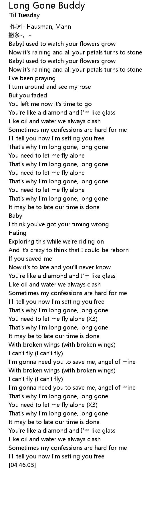 | [03:11.00] | That' s why I' m long gone, long gone |