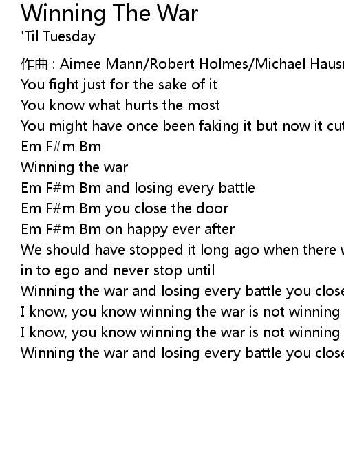 | Em F m Bm and losing every battle | |