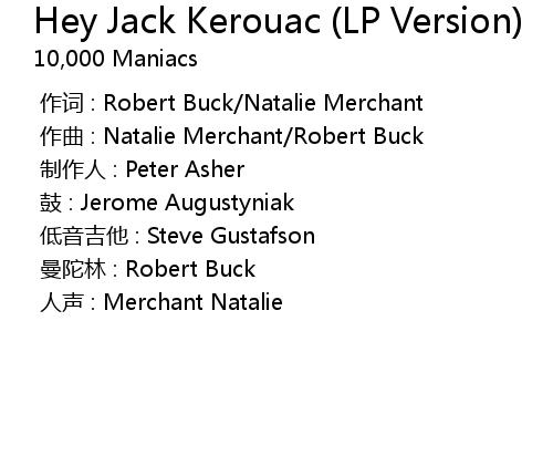 | [00:00.000] | 作曲 : Natalie Merchant/Robert Buck |