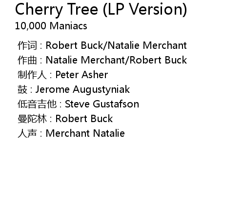 | [00:00.000] | zuo qu : Natalie Merchant Robert Buck |