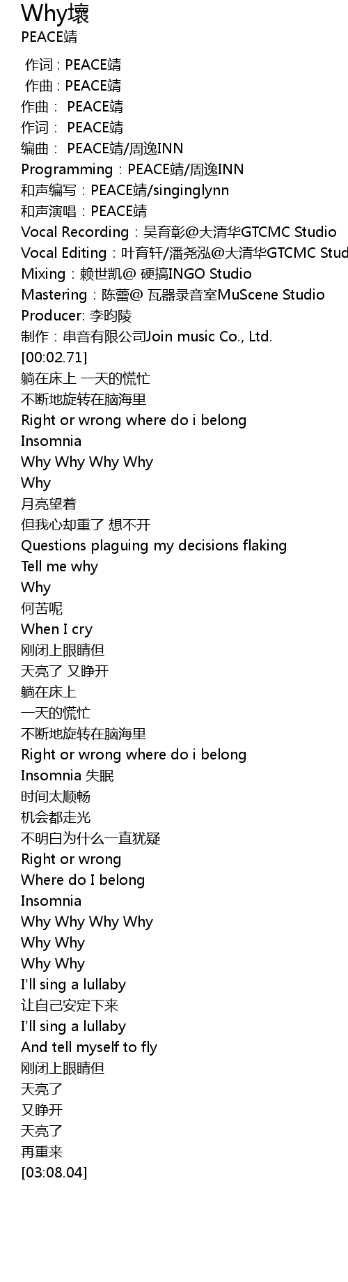 | [00:01.06] | 和声演唱:PEACE靖 |