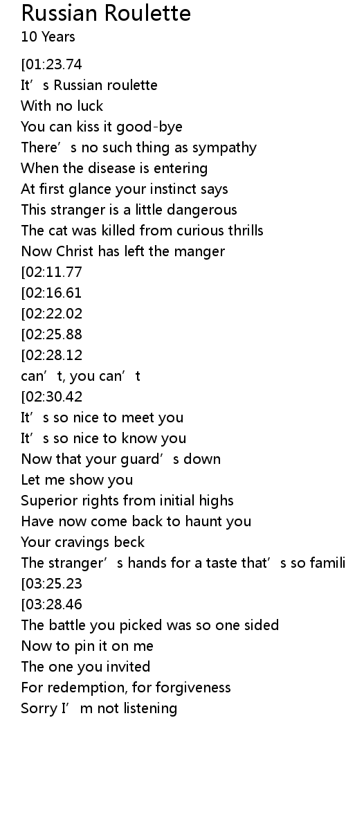 | [00:58.86] | It' s Russian roulette |