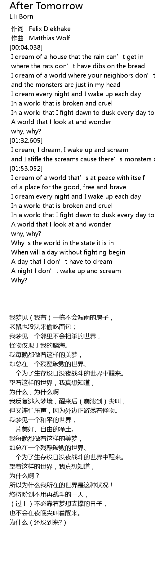 | [00:00.000] | zuò cí : Felix Diekhake |