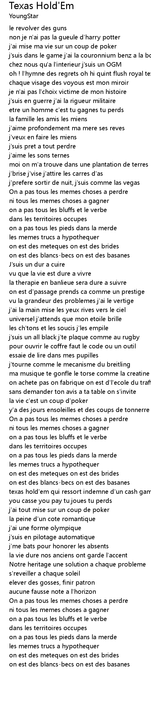 | oh ! l'hymne des regrets oh hi quint flush royal texas hold'em | |