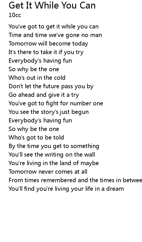 You've got to get it while you can |