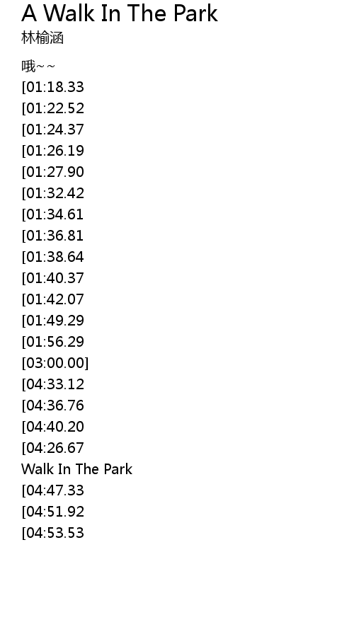 | [03:17.74][01:34.61] | 漫步公园的街头 |