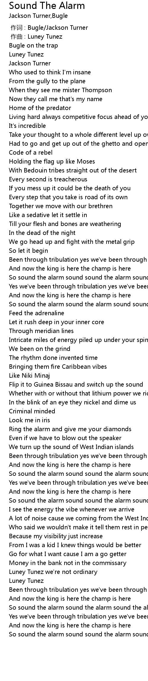 | [01:41.40] | So sound the alarm sound sound the alarm sound sound sound the alarm |