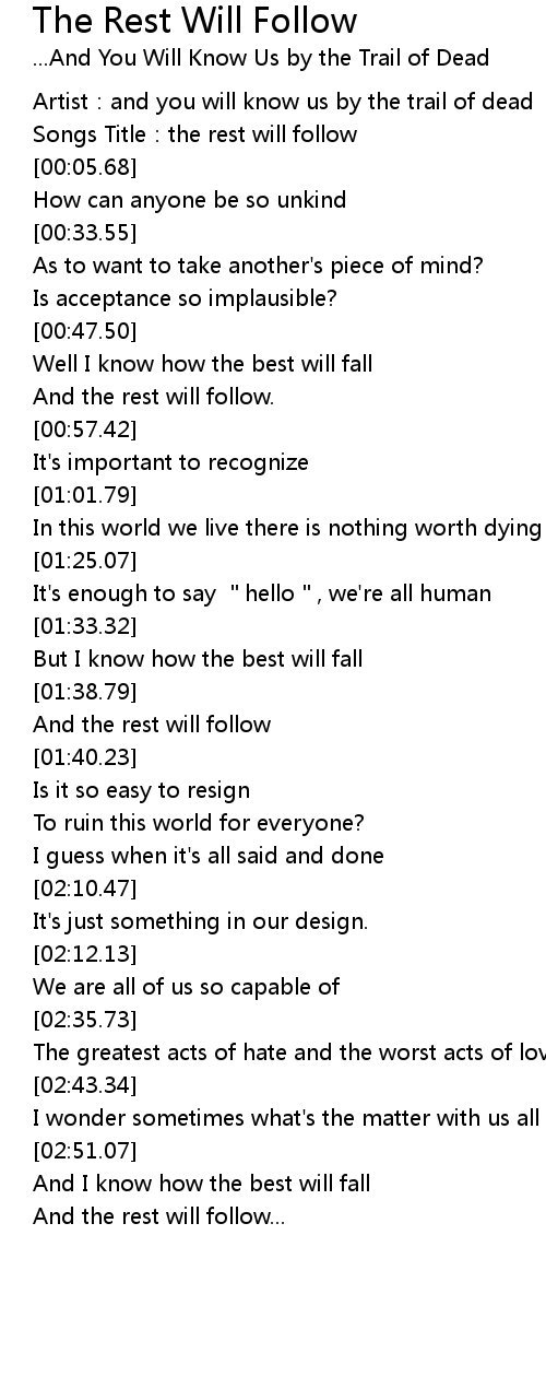 | [00:01.80] | Artist:and you will know us by the trail of dead |