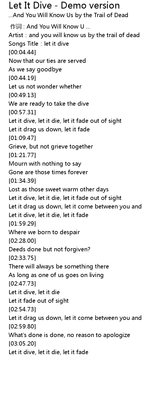 | [03:07.33] | Let it dive, let it die, let it fade |