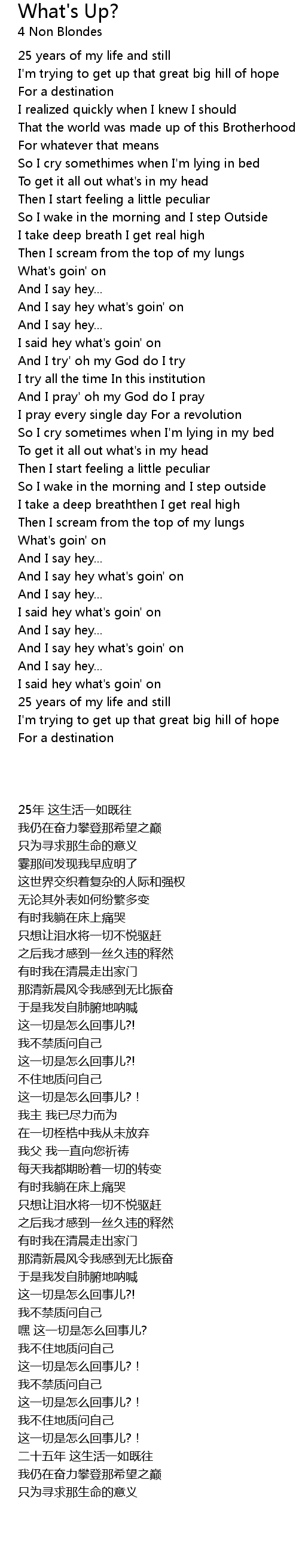 And I say hey what's goin' on |