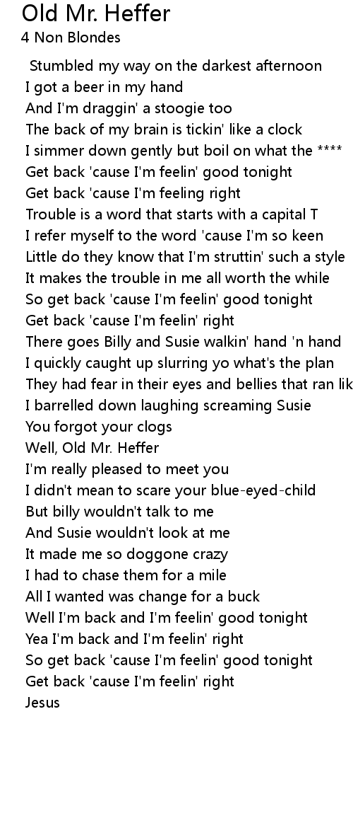 So get back 'cause I'm feelin' good tonight |