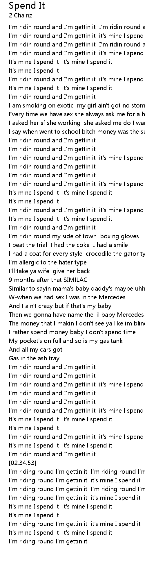 I'm ridin round and I'm gettin it it's mine I spend it |