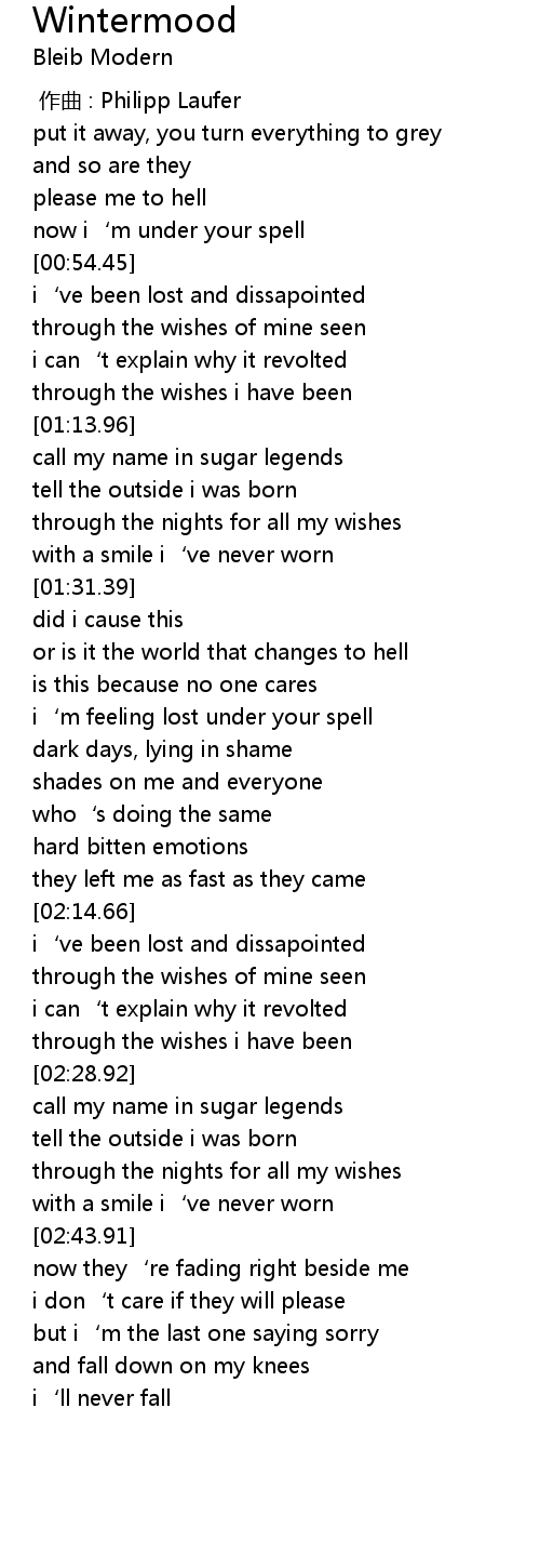 | [02:25.43] | through the wishes i have been |