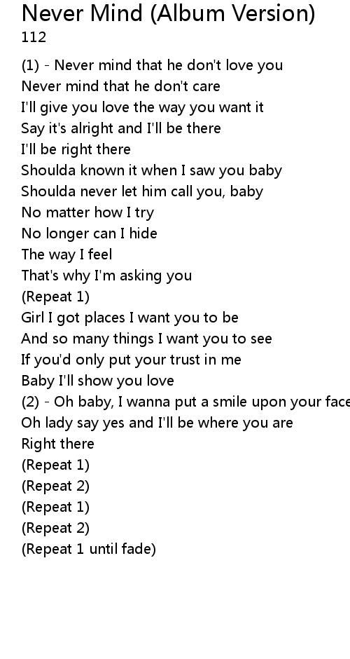 | (1) - Never mind that he don't love you | |