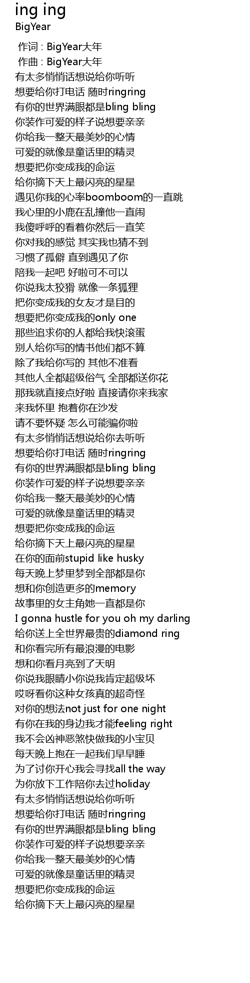 | [00:00.000] | 作词 : BigYear大年 |