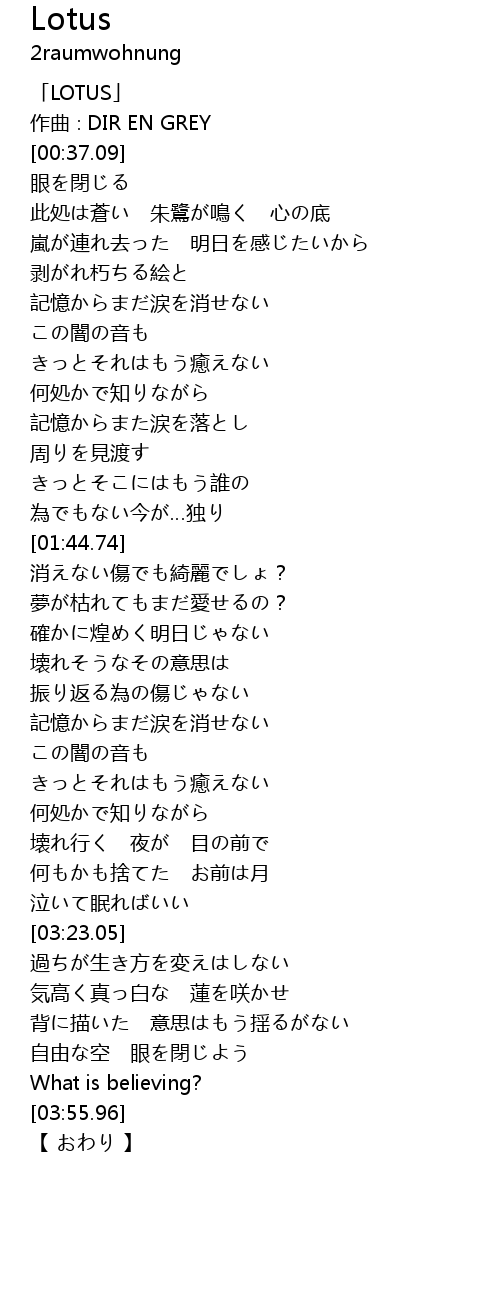 | [00:01.09] | 「LOTUS」 |