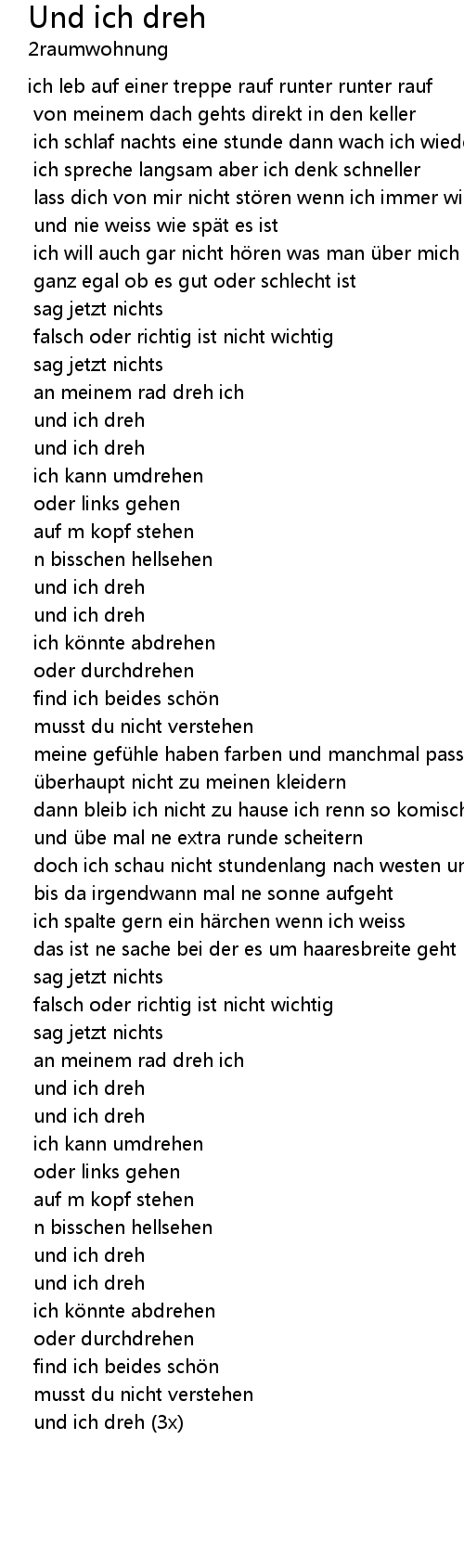 | Song | Und ich dreh |