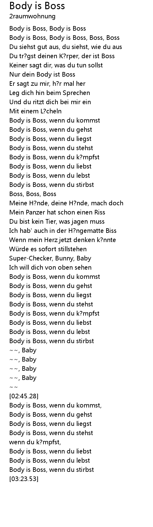 | [00:58.34] | Body is Boss, wenn du gehst |
