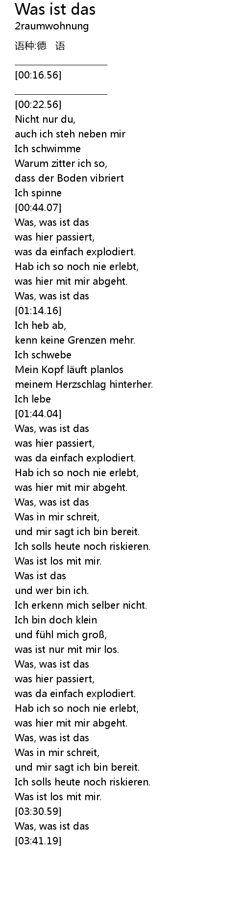 | [03:18.88] | und mir sagt ich bin bereit. |