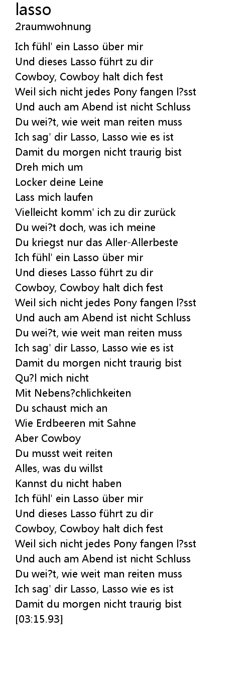| [02:46.70] | Ich fü hl' ein Lasso ü ber mir |