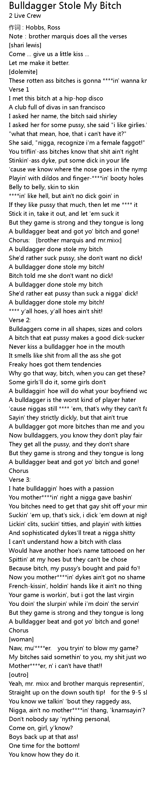 | She said, " nigga, recognize i' m a female faggot!" | |