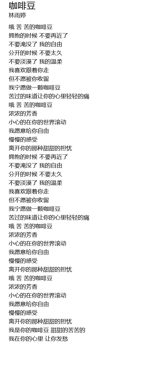 | [02:53.44] | 哦 苦 苦的咖啡豆 |