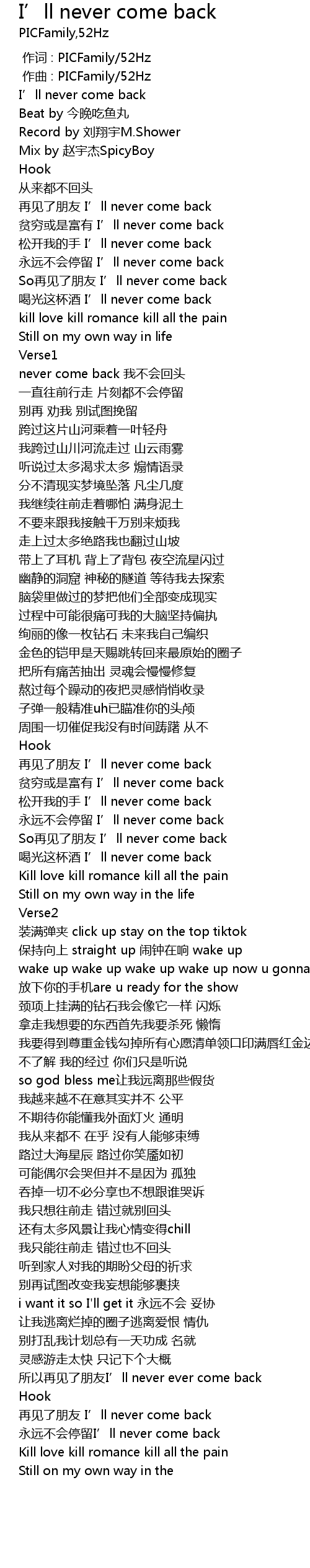 | [00:01.000] | 作曲 : PICFamily/52Hz |