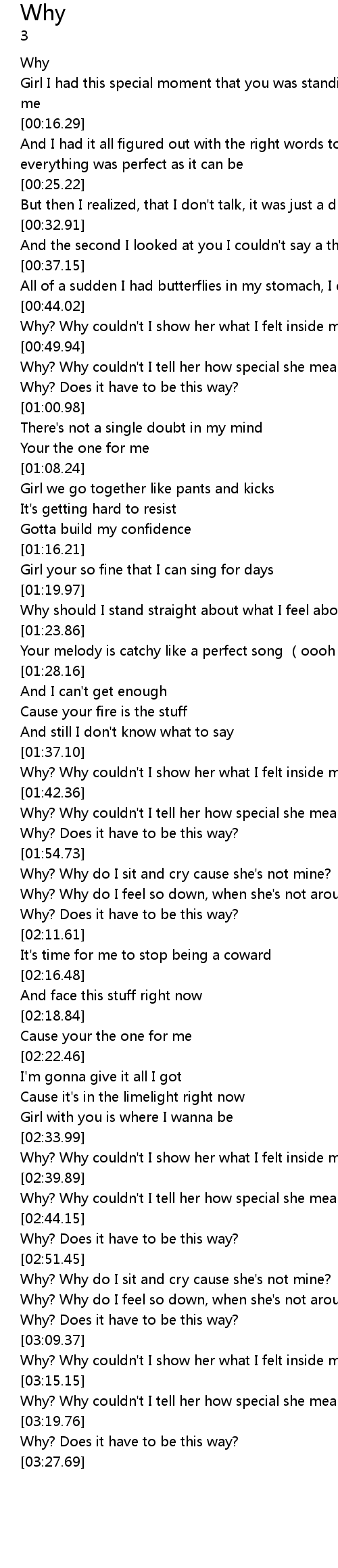 | [03:02.76] | Why? Does it have to be this way? |