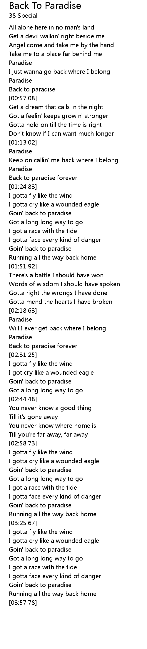 Back To Paradise Lyrics