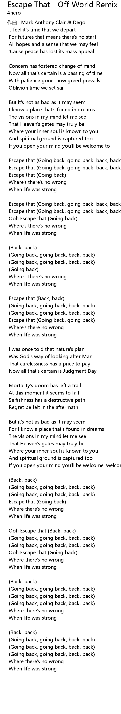 | Escape that (Going back, going back, back, back) | |