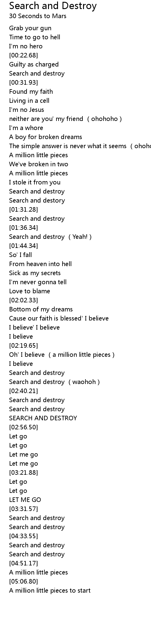 | [01:32.96] | Search and destroy |