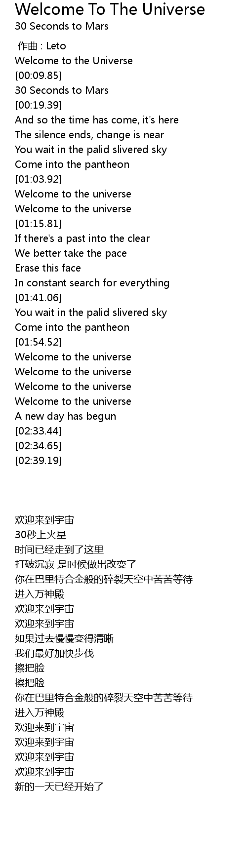 | [02:01.22] | Welcome to the universe |