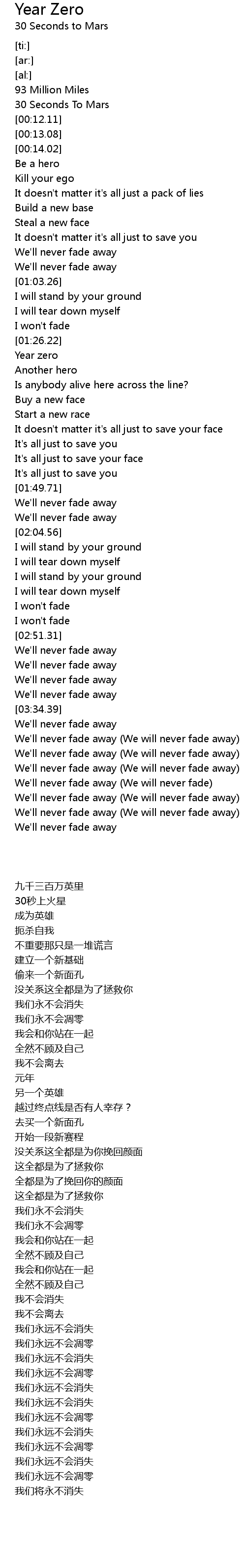 We'll never fade away (We will never fade) |