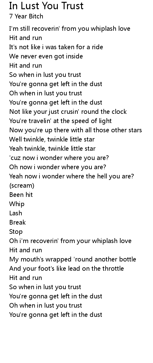 So when in lust you trust |