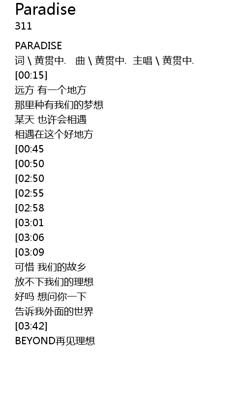 | [03:50] | BEYOND zài jiàn lǐ xiǎng |