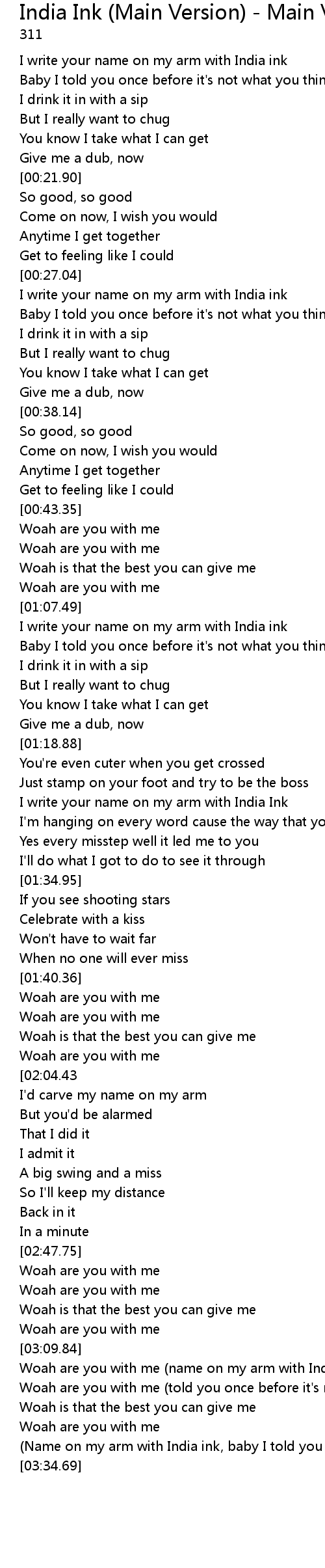 (Name on my arm with India ink, baby I told you once before it's) |