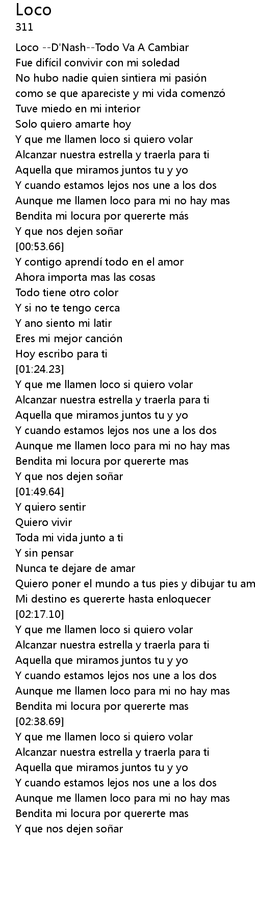 | [00:00.00] | Loco --D'Nash--Todo Va A Cambiar |