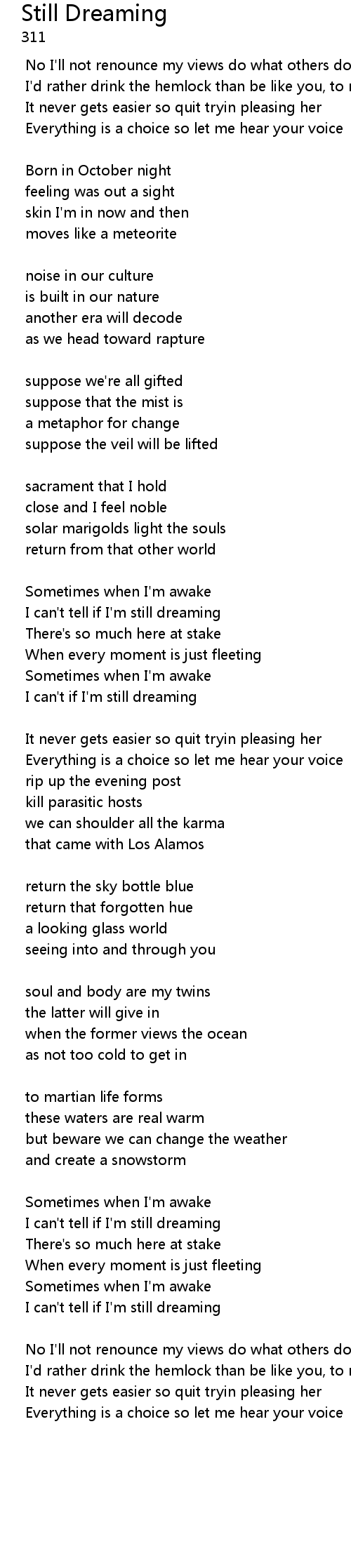 | I can't if I'm still dreaming | |