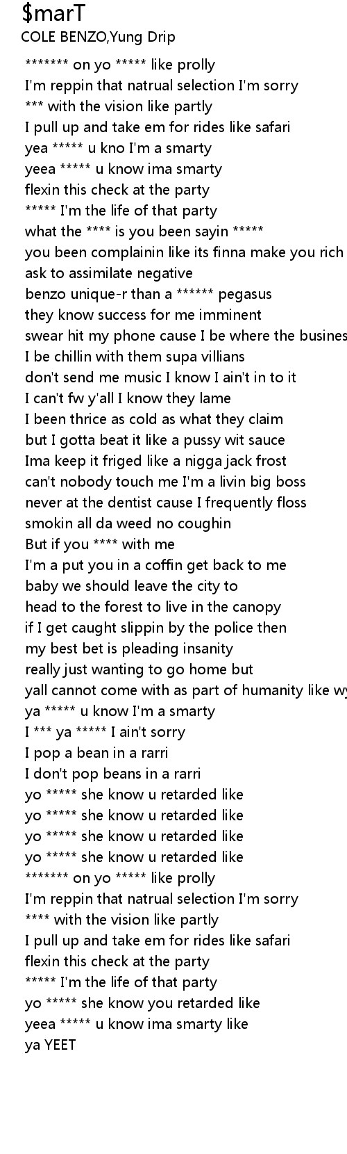 ya ***** u know I'm a smarty |