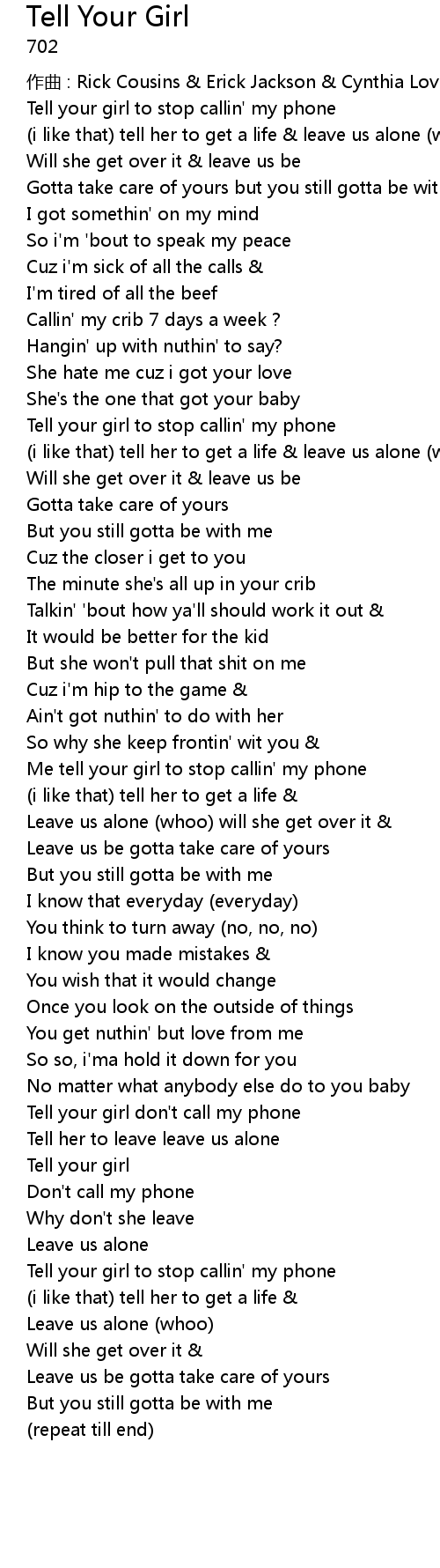| Tell your girl to stop callin' my phone | |