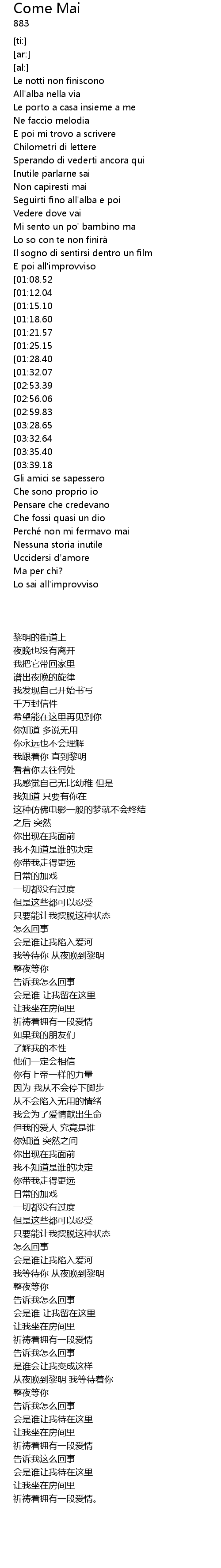 | [03:55.04][03:28.65][03:15.87][03:03.26][01:44.27] | Dimmi come mai, ma chi sarai |