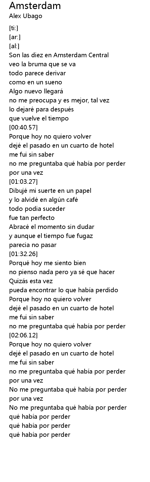 | [00:14.09] | Son las diez en Amsterdam Central |