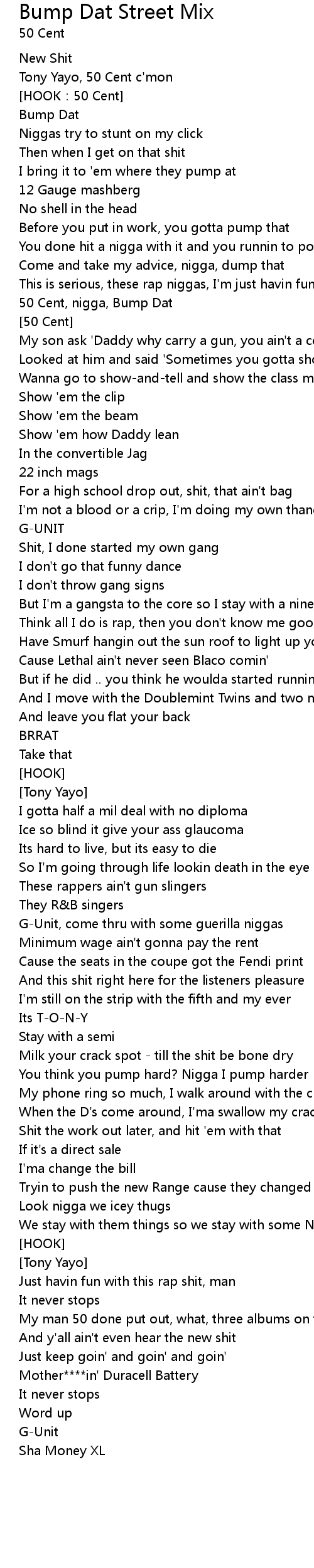 | 50 Cent, nigga, Bump Dat | |