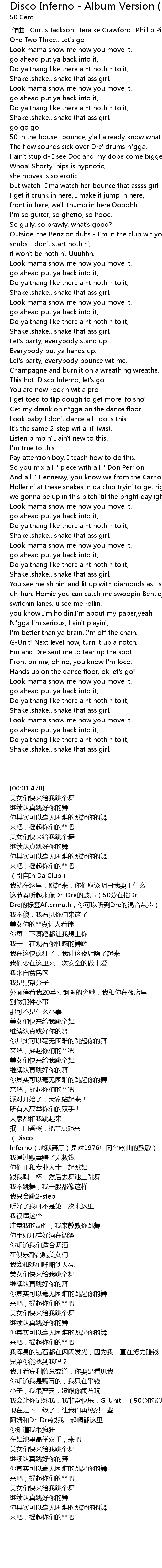 | [00:00.00] | 作曲 : Curtis Jackson+Teraike Crawford+Phillip Pitts |