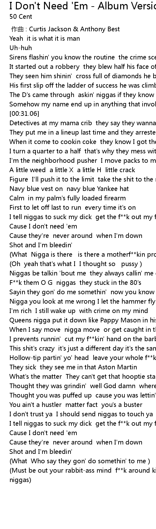 | [00:00.00] | 作曲 : Curtis Jackson & Anthony Best |