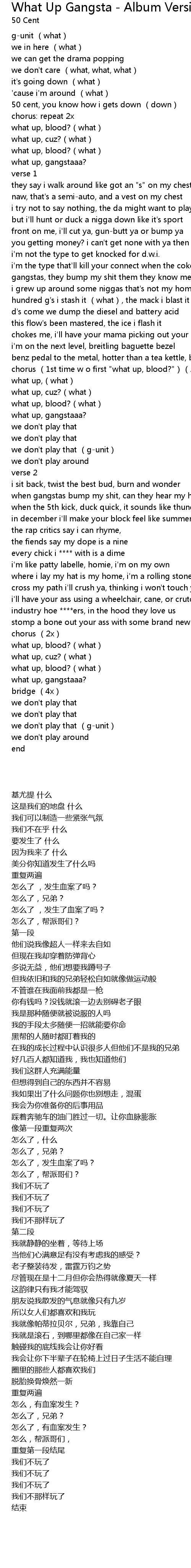 | Song | What Up Gangsta - Album Version (Explicit) |