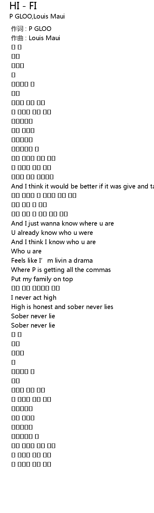 | [00:00.000] | 作词 : P GLOO |